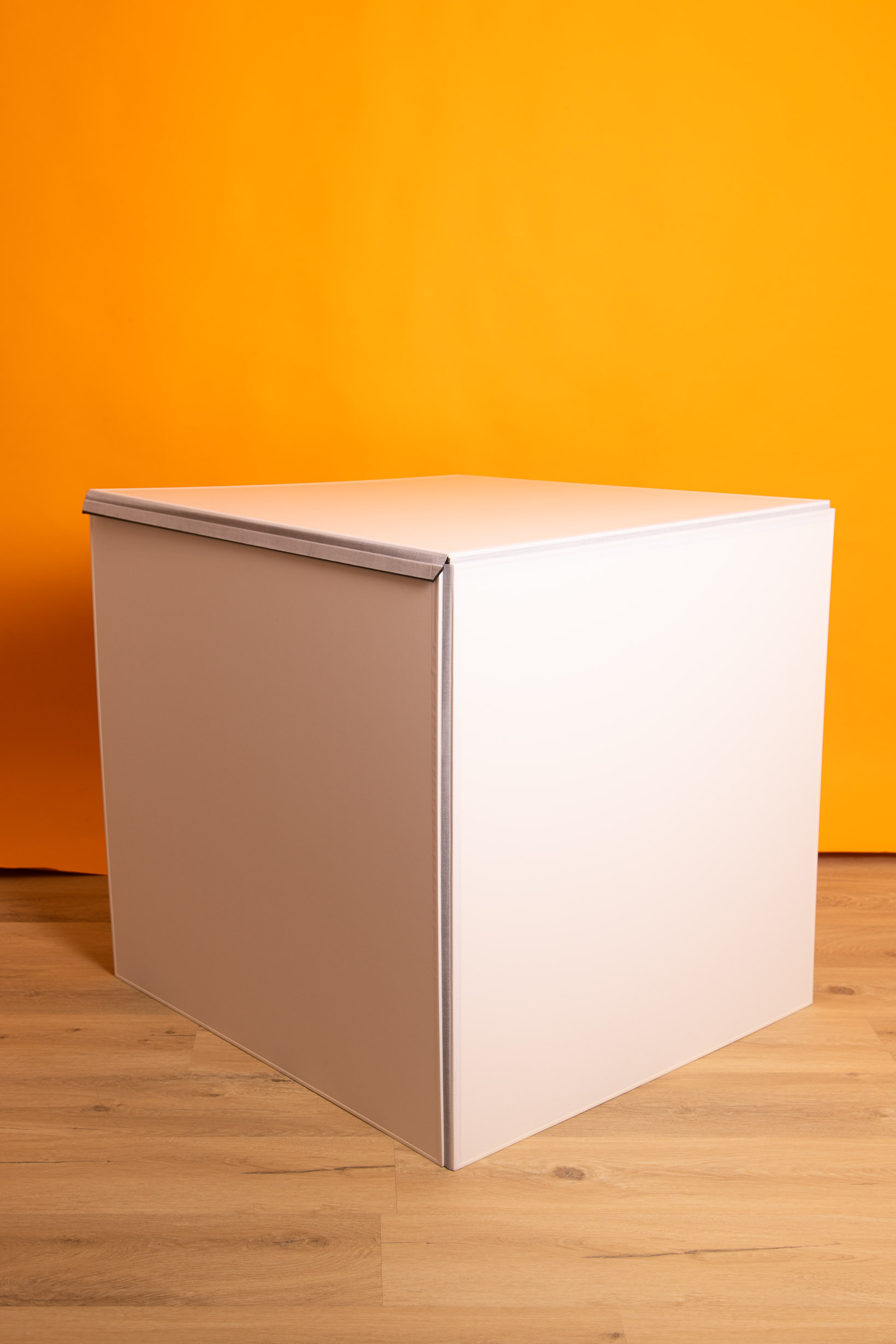 Deze grote "lantaarn" softbox is ideaal om een grote oppervlakte egaal te belichten.